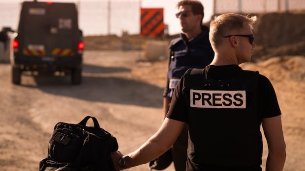 Israel’s military restricts access at Gaza’s southern border with Israel, where journalists are escorted in humvees to a parking lot. Despite numerous requests for freer access, Israel only allows brief escorted visits for journalists. On this occasion, Israel aims to address the delay in aid distribution to Gaza by showcasing the stockpiled aid waiting for UN handling.
