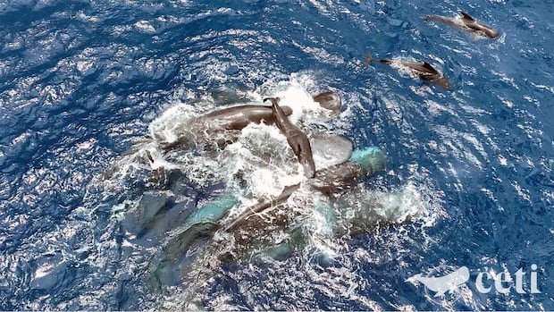 The remarkable occurrence unfolded on July 8, 2023, off the coast of Dominica, where researchers studying whale communication were captivated by a group of 11 whales, predominantly females, engaging in synchronized behaviors, including thrashing and diving. Swiftly deploying drones and microphones, the scientists captured the entire birthing process, lasting approximately 30 minutes, with pairs of whales sustaining the calf above water until it could swim independently.